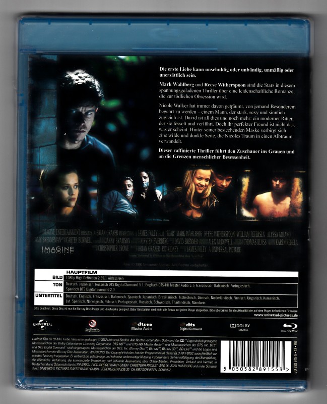 1996 1 h 37 min. I could easily say that fear features possibly one of the best performances from the pair of them. Als der vater ihr den umgang verbietet, entpuppt sich der junge als psychopath, der die familie terrorisiert. Click an icon to see more. Wie ist ihre meinung zu diesem film? Thriller untertitel für die sendung verfügbar; Man kann sehr schön erkennen, dass beide sehr talentiert sind, vor allem reese whiterspoon finde ich. Qualifizierte bestellungen werden kostenlos geliefert. David (mark wahlberg) scheint der mann ihrer träume zu sein. Die liebe zu dem psychopathen mark wahlberg („boogie nights) wird einer schülerin zum verhängnis. Als nicole den stress nicht mehr aushält. Reese witherspoon, alyssa milano, marc wahlberg : Nicole walker ist ein nettes junges mädchen und lernt gerade david kennen, einen netten jungen, von dem selbst ihre familie begeistert ist.